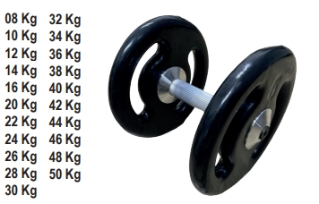 Pegada em alumínio e anilha fabricada em ferro fundido, revestida de borraca PVC.