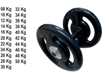 Pegada em emborrachada e anilha fabricada em ferro fundido, revestida de borraca PVC.